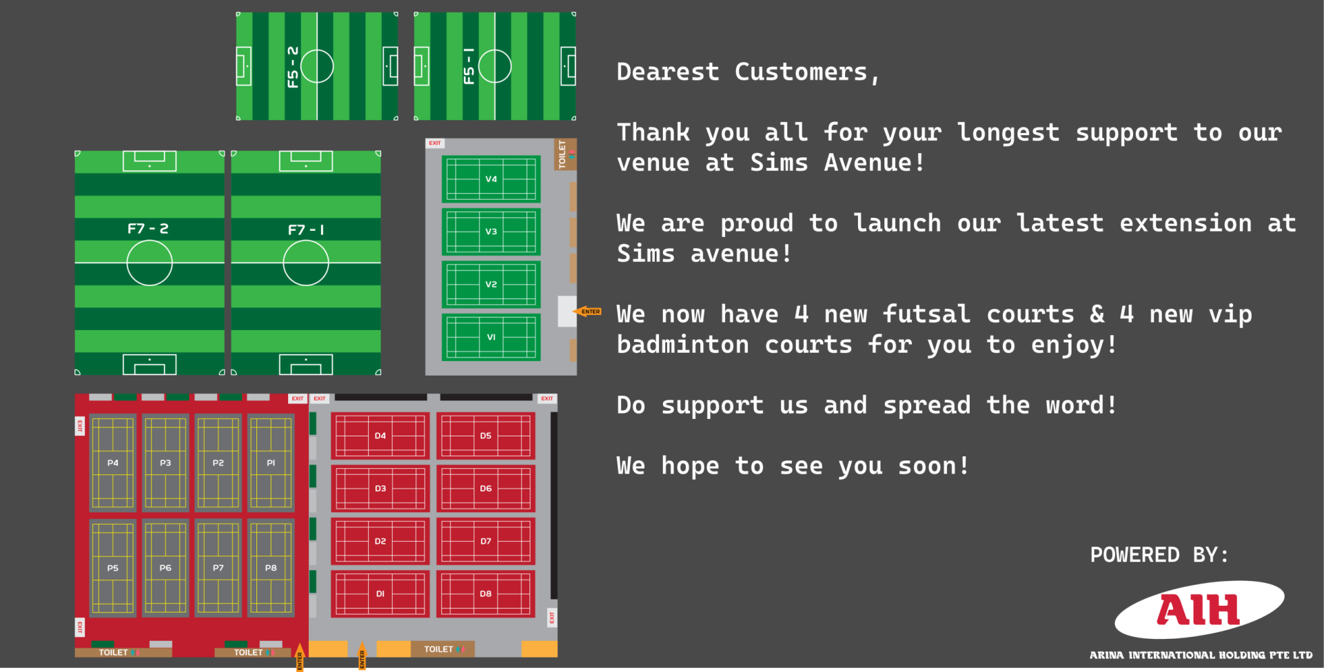 - Venue: TSA (The Sports Arina) @ Expo Hall 7